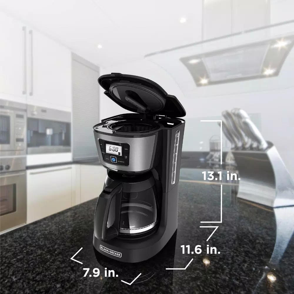 Customize your coffee with the BLACK+DECKER 12-Cup Serving* Programmable Coffeemaker. The QuickTouch programming panel includes controls for brew strength, time settings, and an auto brew feature that lets you wake up to fresh coffee every morning. The specially engineered Evenstream Showerhead ensures optimal flavor extraction, and a 1-4 cup brew option maintains bold flavor for smaller brews, so youll always have the perfect amount of great tasting coffee.