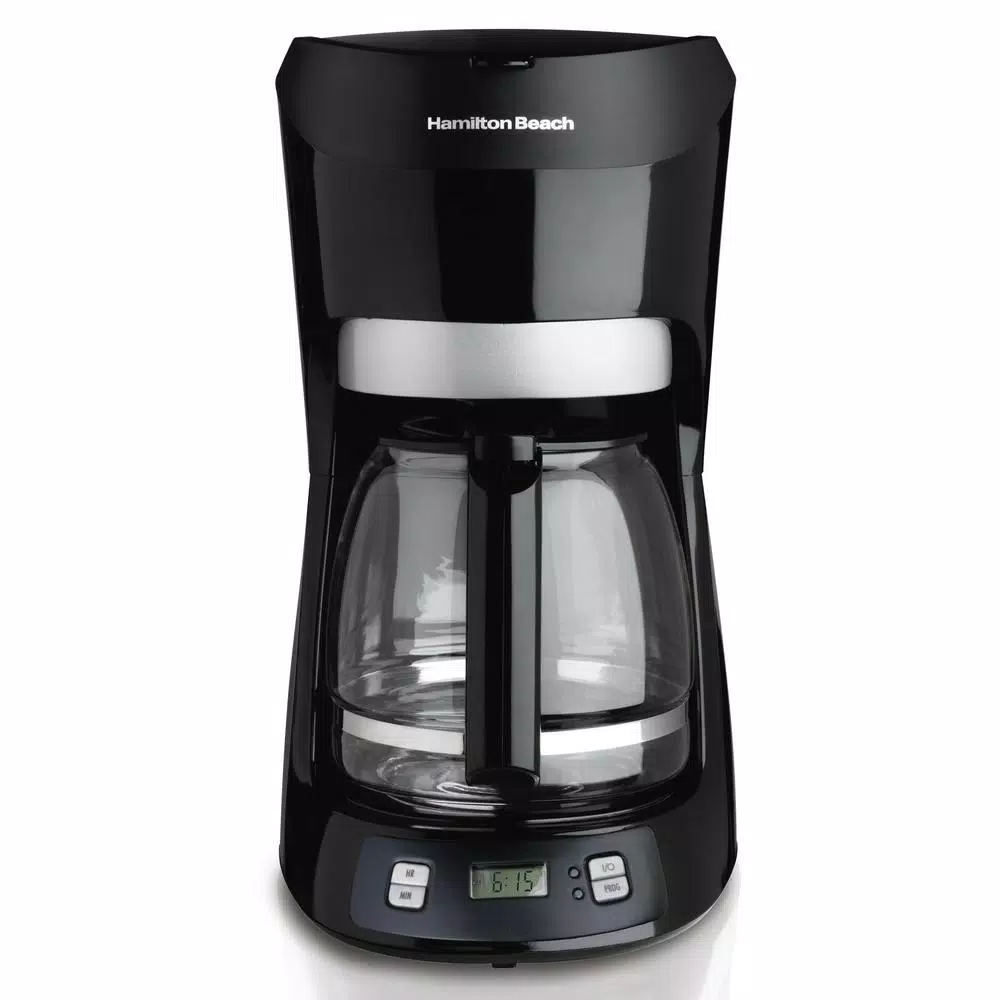 Skip the alarm and wake up to the aroma of freshly brewed coffee every morning instead. The Hamilton Beach 12-Cup Programmable Coffee Maker can be programmed up to 24-hours in advance, so you can make sure you never miss your coffee wake-up call. Pour your first cup before the brewing process is done, without compromising taste or creating a mess, with the auto pause and serve feature. The 2-hour automatic shutoff gives you peace of mind. No hand washing is needed – both the carafe and filter basket are top-rack dishwasher safe.