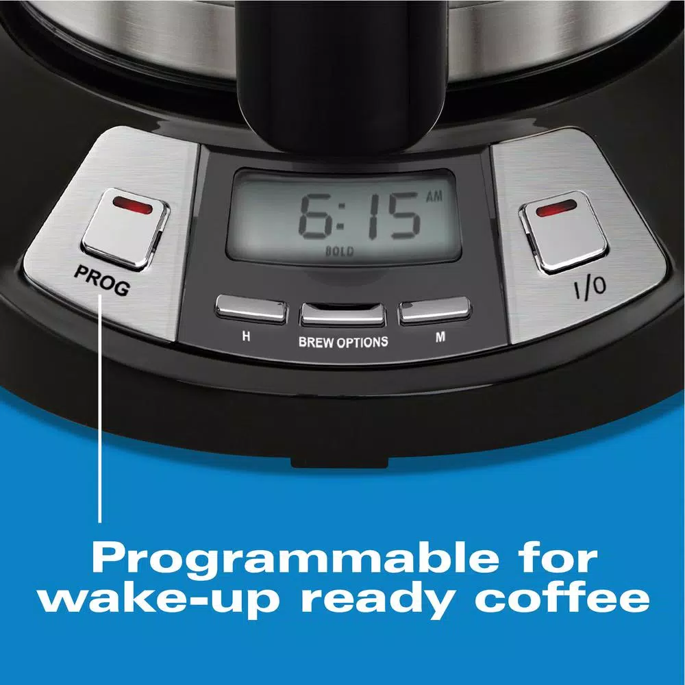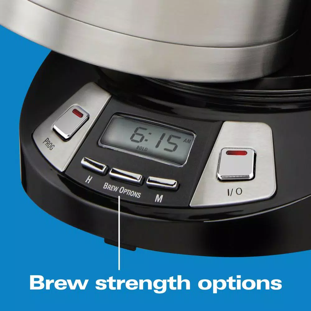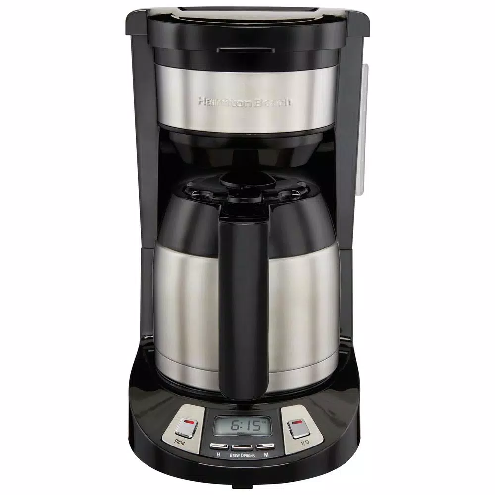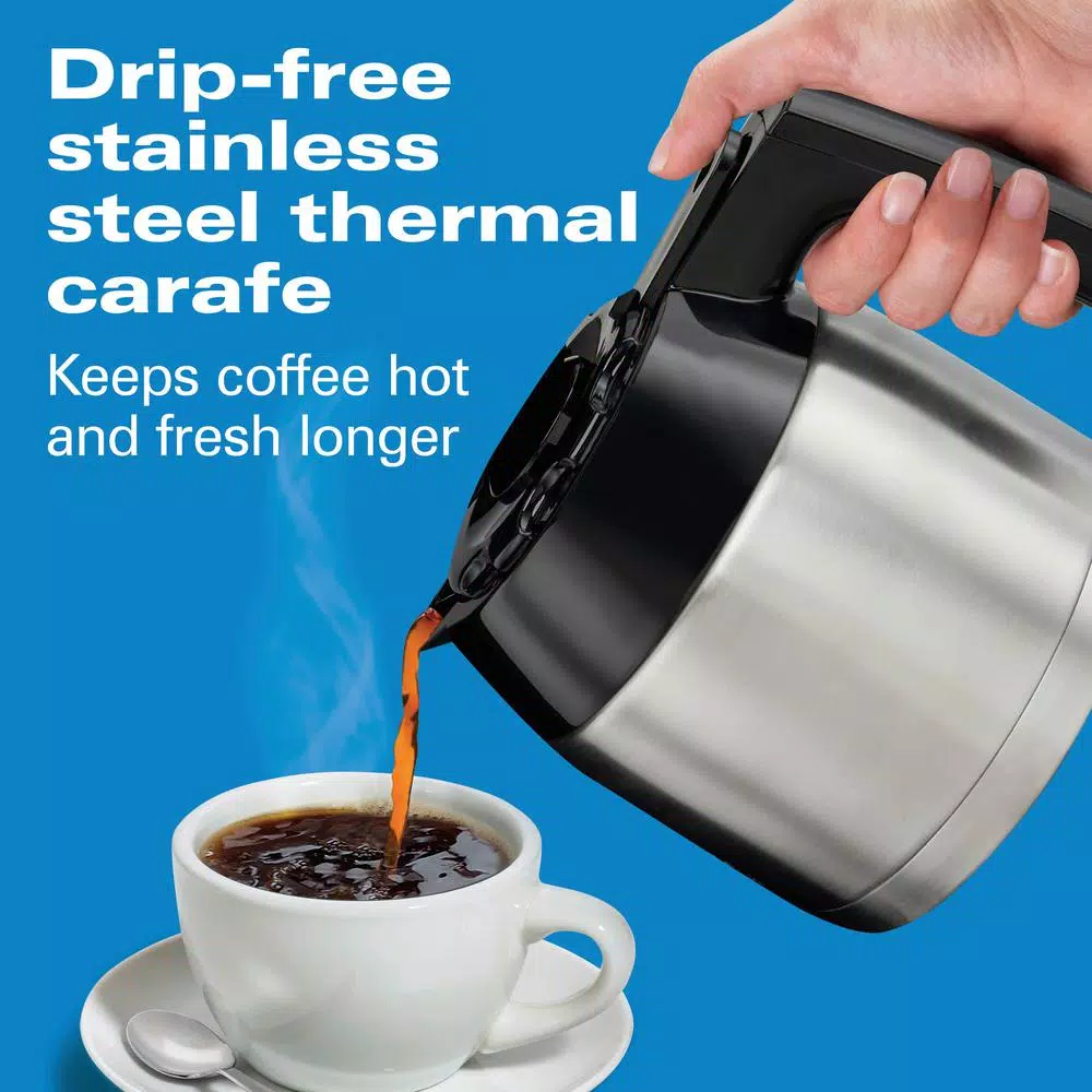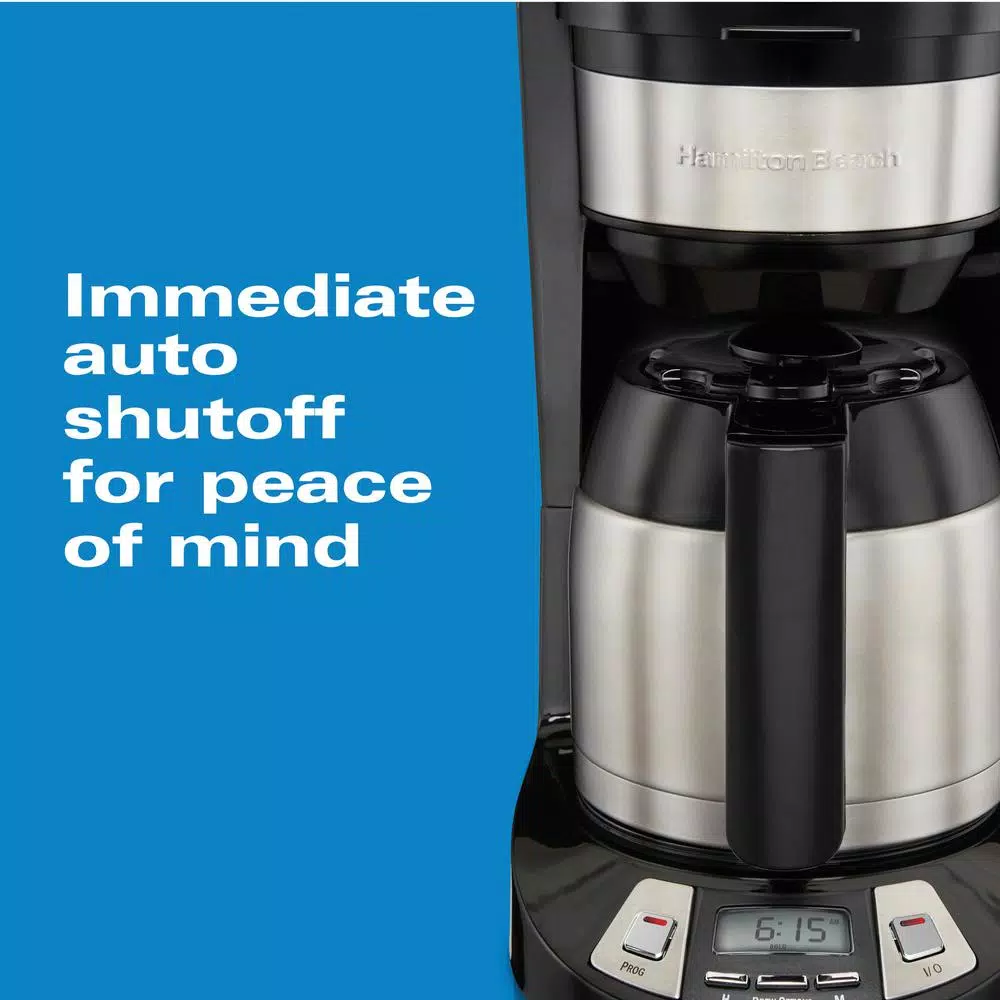 For hot coffee that tastes fresh hours after you brew it, make the switch to thermal. The Hamilton Beach 8 Cup Programmable Coffee Maker with Thermal Carafe keeps coffee hot and fresh-tasting longer, thanks to its vacuum-sealed thermal stainless steel carafe. Once you try it, you’ll notice the difference every time you brew. Just add fresh ground coffee and water to the Hamilton Beach 8 Cup Programmable Coffee Maker with Thermal Carafe, then right before you brew, quickly rinse the thermal carafe with hot water. This hot-water-rinsing step doesn’t take long, but it makes a big difference in the long run, since it warms up the stainless steel to help it hold coffee’s hot temperature longer. And because the thermal stainless steel carafe is insulating your hot coffee without the need for a heating plate, there’s no fear of coffee losing its fresh, just-brewed flavor.