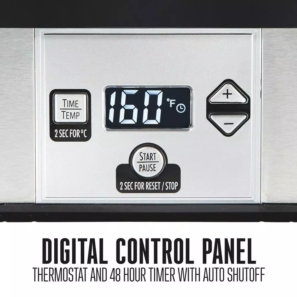 - Digital control panel features 48 hour timer with auto shutoff and adjustable thermostat (100-160°F / 38 – 71°C)