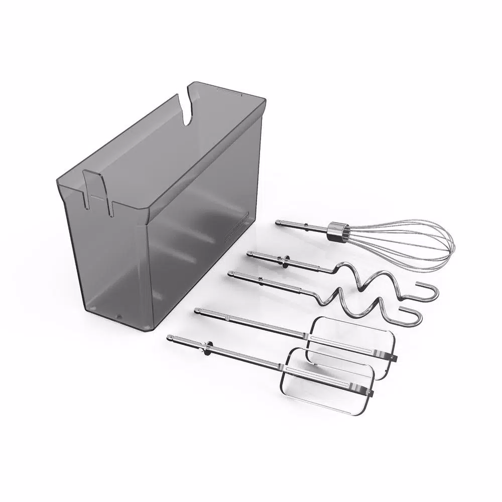 - Mixing accessories: this complete mixing set includes: 2-professional-style beaters, 2-dough hooks, and 1-chef’s whisk