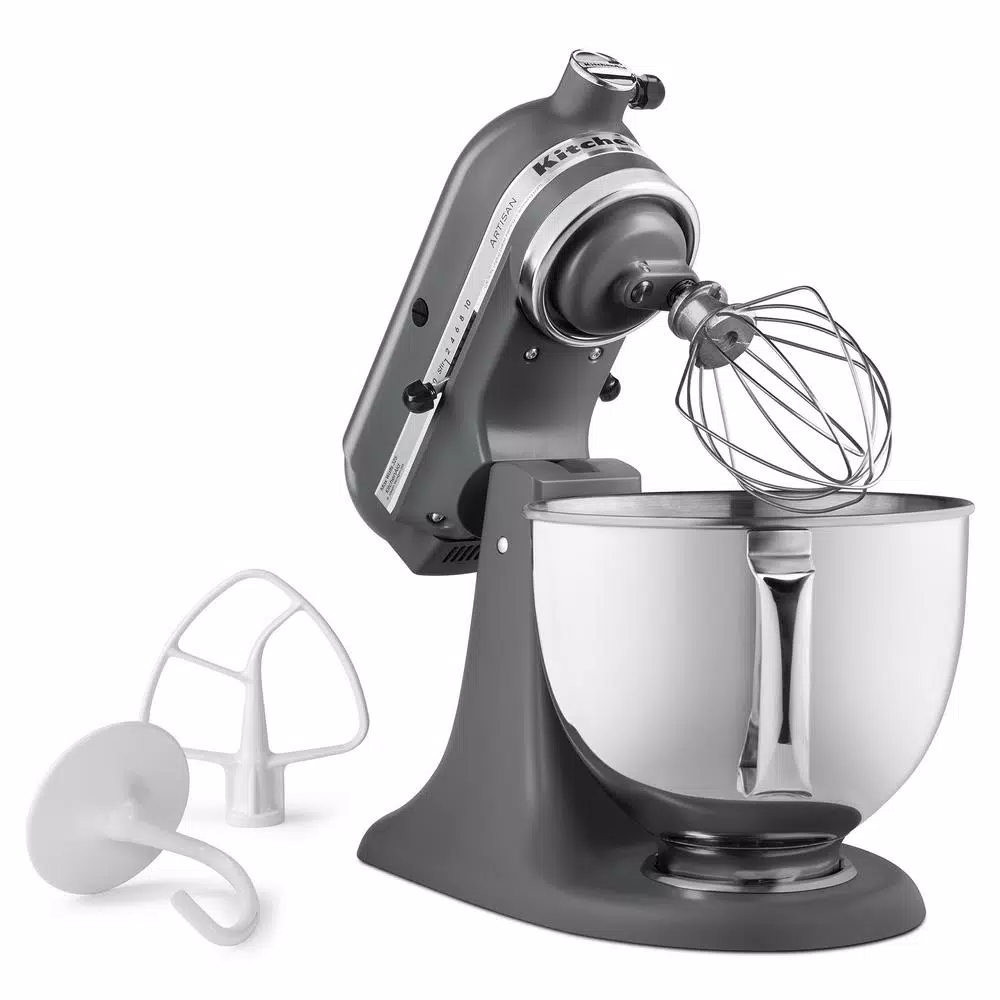 - Includes (1) Coated Flat Beater, (1) Coated Dough Hook, (1) Wire Whip, (1) Pouring Shield