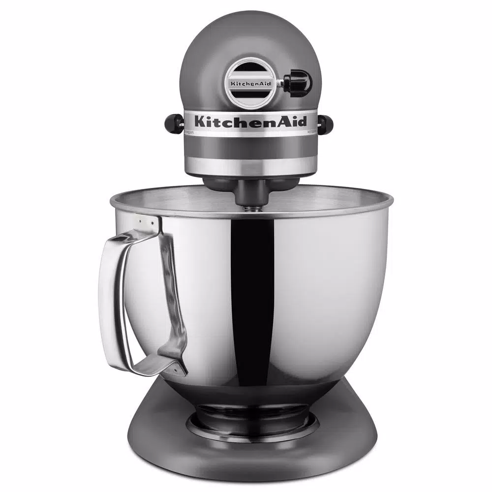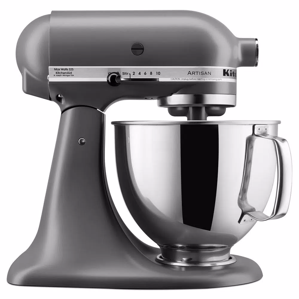 Make up to 9 dozen cookies in a single batch with the KitchenAid® Artisan® Series 5 Quart Tilt-Head Stand Mixer. This mixer also features 10 speeds to thoroughly mix, knead and whip ingredients quickly and easily and is available in a variety of colors to perfectly match your kitchen design or personality. For even more versatility, use the power hub to turn your stand mixer into a culinary center with over 10 optional hub powered attachments, from food grinders to pasta makers and more.