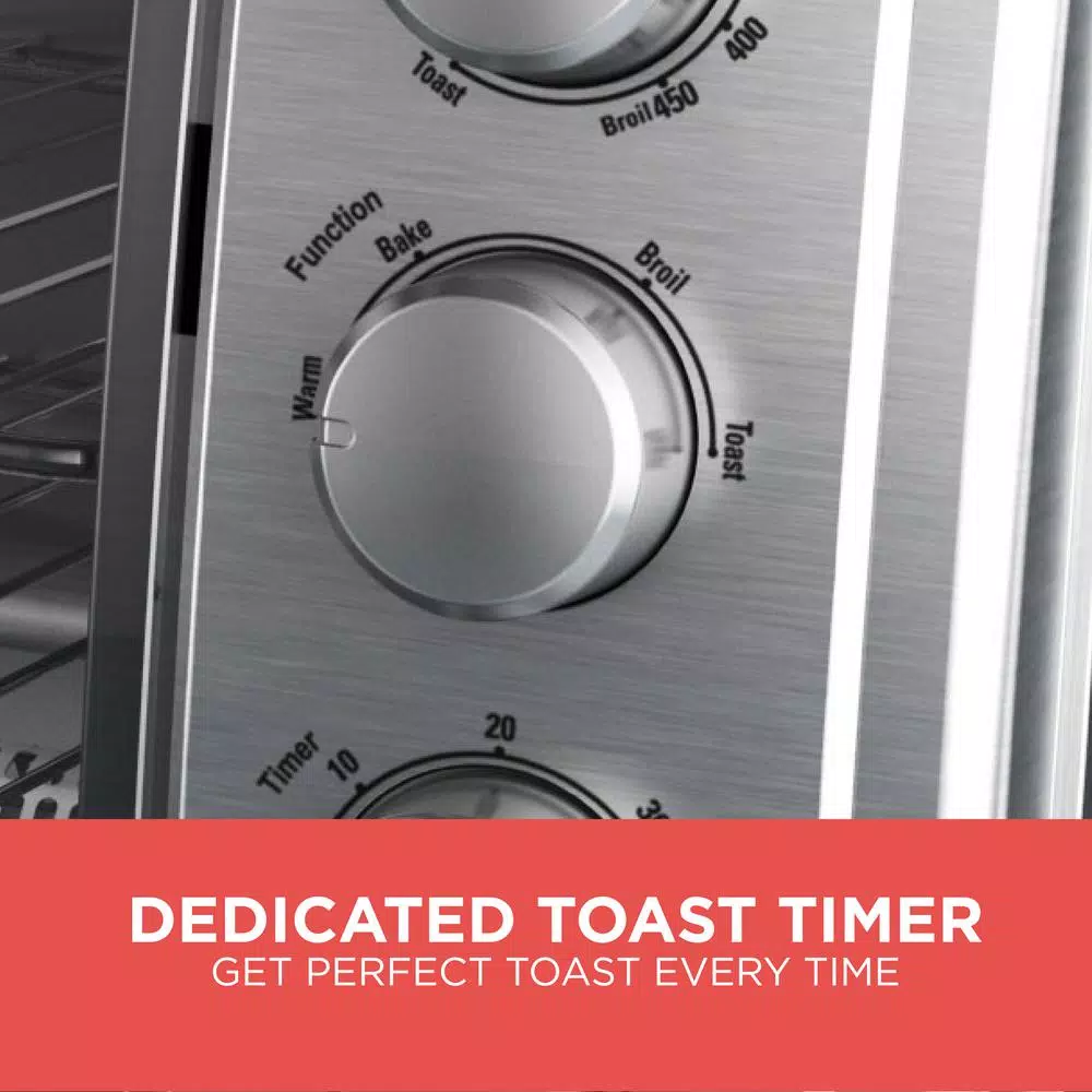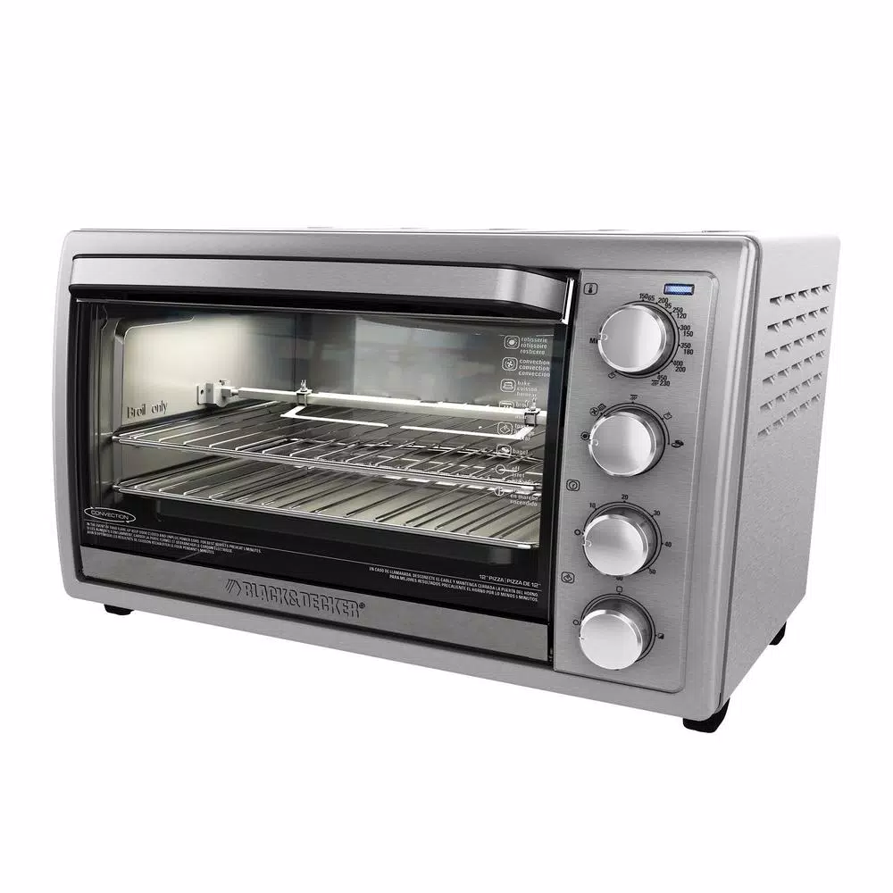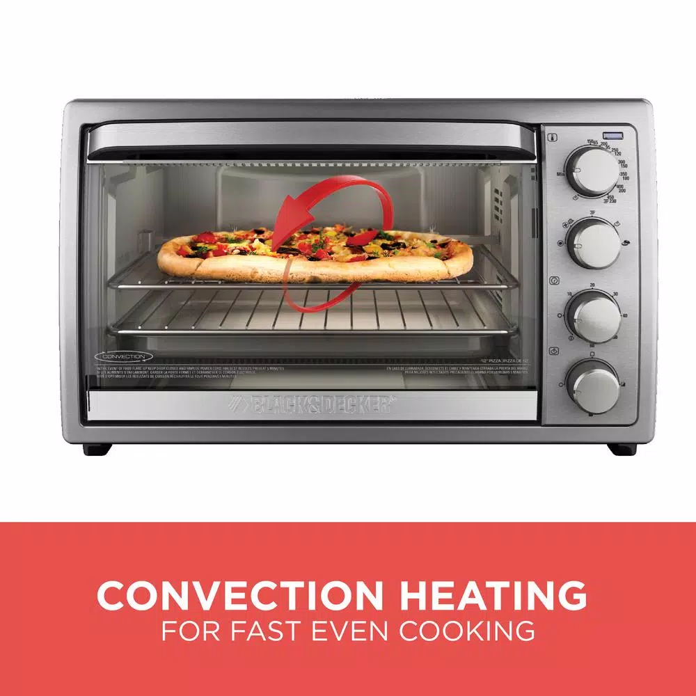 From pizza to chicken, cook all of your favorites in this BLACK+DECKER rotisserie convection countertop oven. With a removable rotisserie rack, two toasting trays and a bake pan included the options are endless. Choose from bake, broil and toast and keep warm functions to maintain the best setting for any foods. A removable crumb tray and dishwasher safe parts make for easy clean up.