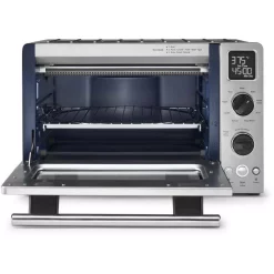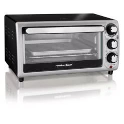 You won’t find a design like the Hamilton Beach Easy Reach Toaster Oven with Roll-Top Door anywhere else. Its unique and large opening makes food easy to reach. And since the door opens above the oven, it frees up your countertop space in front. Best of all, it’s easy to keep clean because food can’t spill on the door. Contoured dials are easy to grip and turn, making it simple to switch between bake, broil and toast settings.The stay-on setting is safer thanks to a stop mechanism that prevents the knob from being turned to stay-on by accident. Sprinkle cheese on your pizza while it’s baking or safely grab toast in the very back without all the maneuvering. The roll-top door moves up and out of the way so you can have safe, easy access to your food before, during and after cooking. The Easy Reach Toaster Oven door rolls up, not down, making it easy to move food directly to your plate when it’s done. Melted cheeses, crumbs and juices are less likely to end up on the door because the door is never under the food rack, even when food is being removed or put into the oven. The roll-top door and the crumb tray are both removable for cleaning. The crumb tray easily slides out from the front of the toaster oven, instead of the bottom, making cleanup simple while keeping crumbs off the countertop. With 3 settings and a spacious interior, the Hamilton Beach Easy Reach Toaster Oven can accommodate the foods your family makes most.