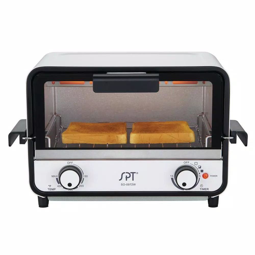 Our new toaster oven features innovative stay-cool rack handles. The handles sit outside of the oven so that they remain cool at all times. The reversible baking rack creates dual rack positions for versatile cooking. Sleek and modern design with glossy white cabinet compliments your kitchen counter for your daily use.